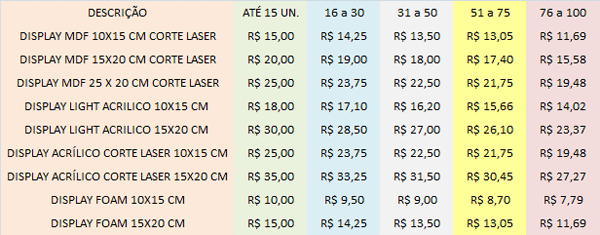 Em Acrílico e MDF podem receber corte de contorno a laser. |