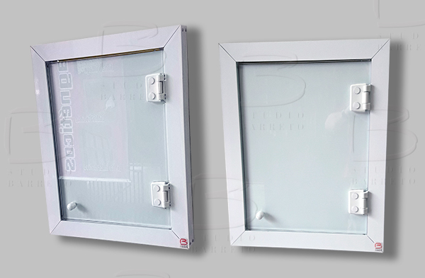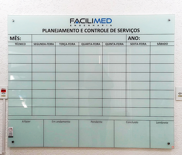 | Quadro Informativo e Lousa de Vidro no mesmo Painel | ||