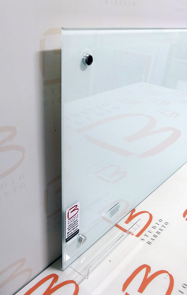 Lousa de Vidro com Cantoneiras e Calha de Acrílico |