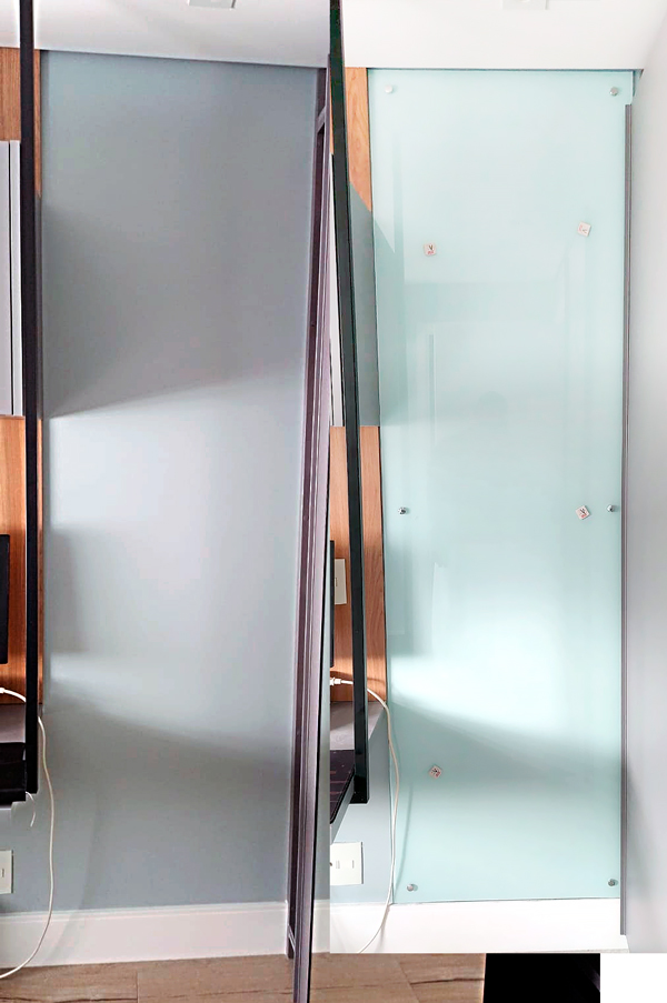 Lousa de Vidro Extra Clear Liso Fixação por meio de colagem |