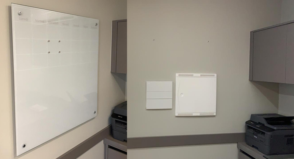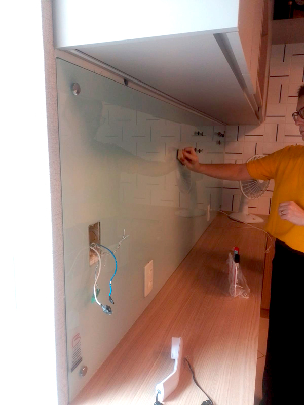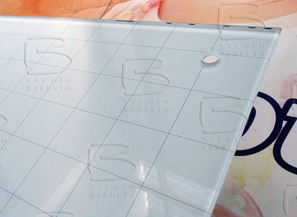 Lousa de Vidro com Fundo Personalizado - Fixação por meio de Colagem |