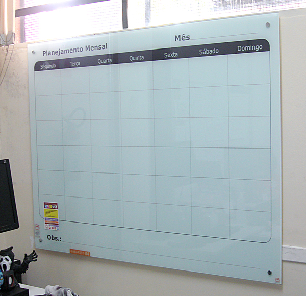 Lousa Planejamento em Vidro Temperado - 90x60 cm |