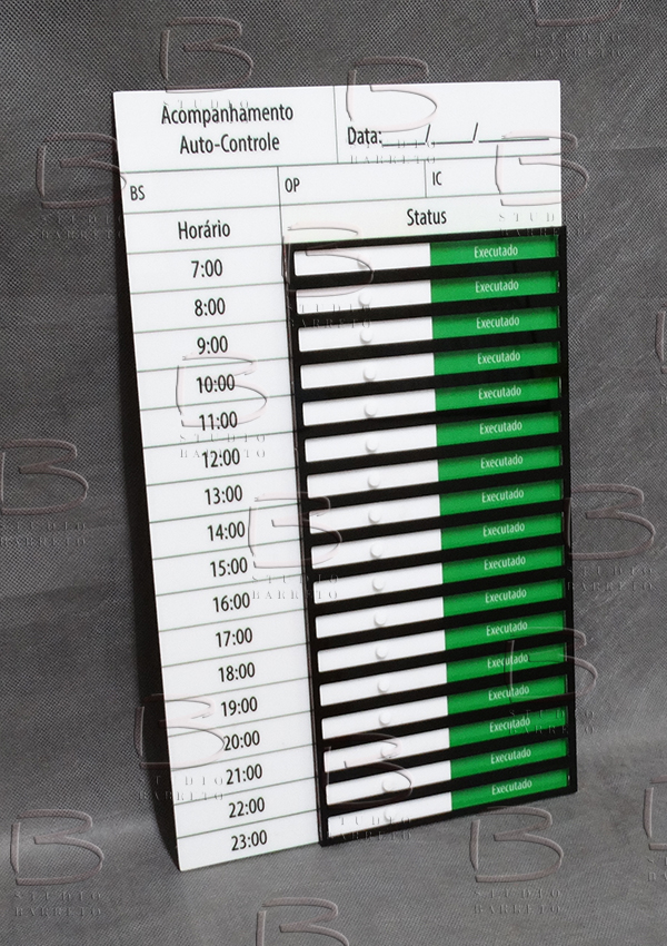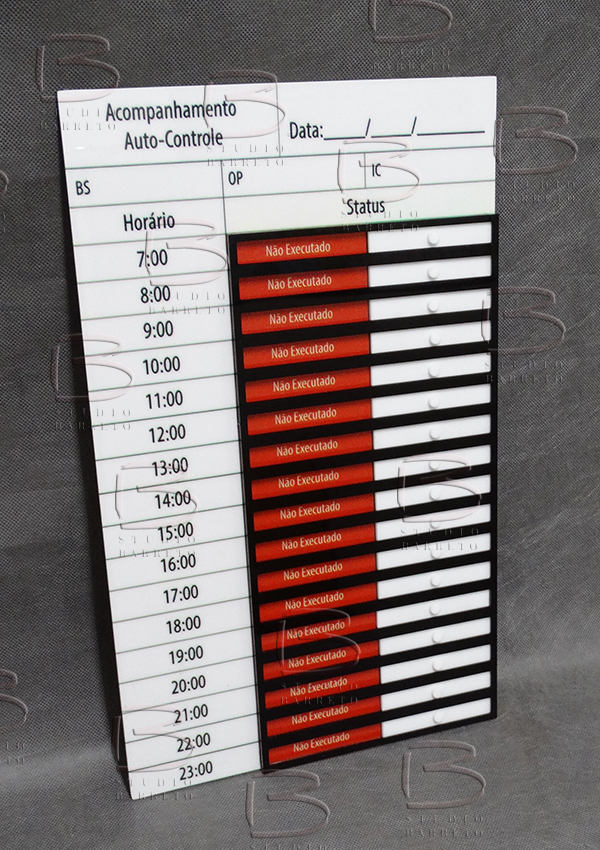 Placas com trilhos e plaquetas para controle de produção