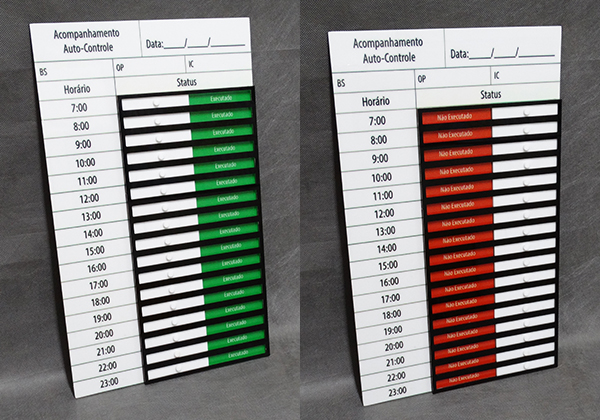 | Placas com trilhos e plaquetas para controle de produção | ||