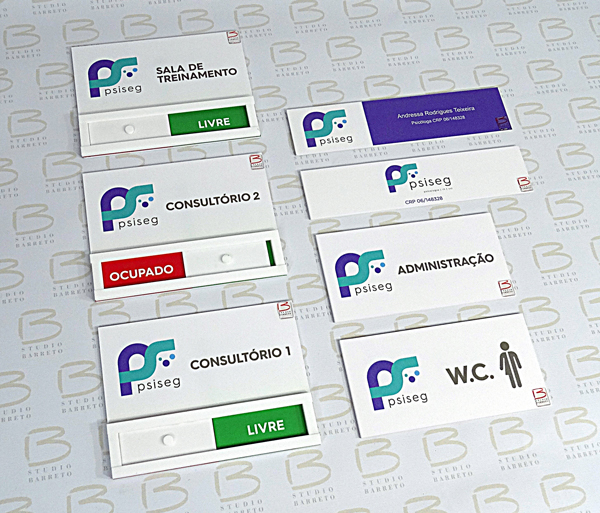 Placa PSAI com letras e símbolos adesivos plotados |
