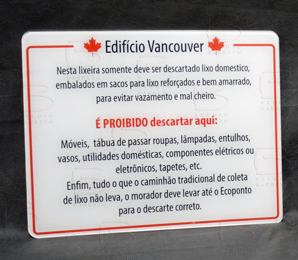 Placa Acrílica com impressão digital em película transparente |