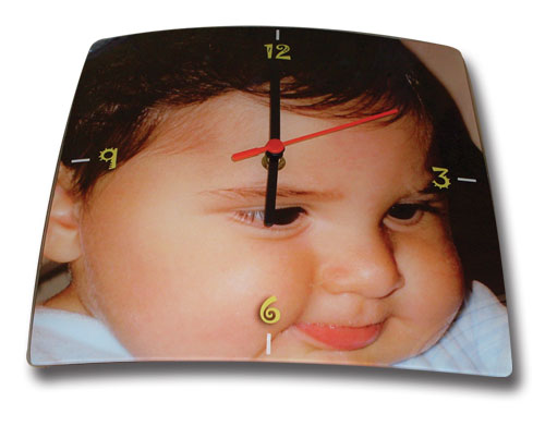 Relógio de Parede Fotográfico em Vidro Curvo - Modelo Quadrado