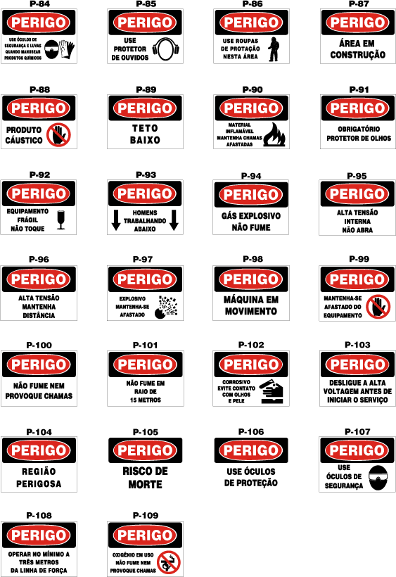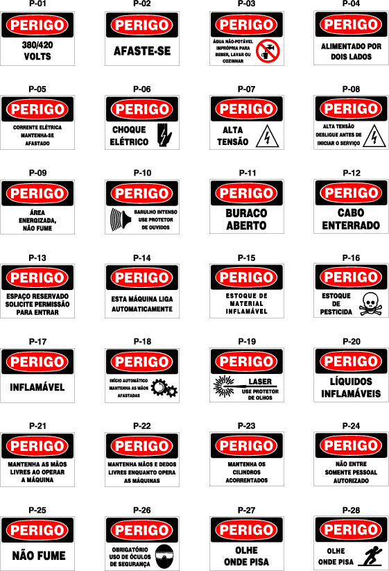 Placas de Sinalização de Segurança - Título Perigo