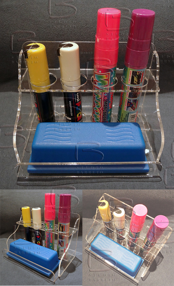 | MOD. 3011 - Suporte p/ 04 canetões até Ø32 mm e apagador - DUPLA-FACE NO VERSO |