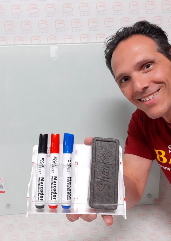 | Lousa Magnética com Suporte Acrílico Exclusivo Studio Barreto | ||