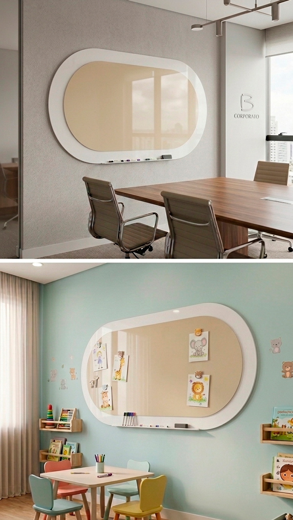 | Quadro Informativo e Lousa de Vidro no mesmo Painel | ||