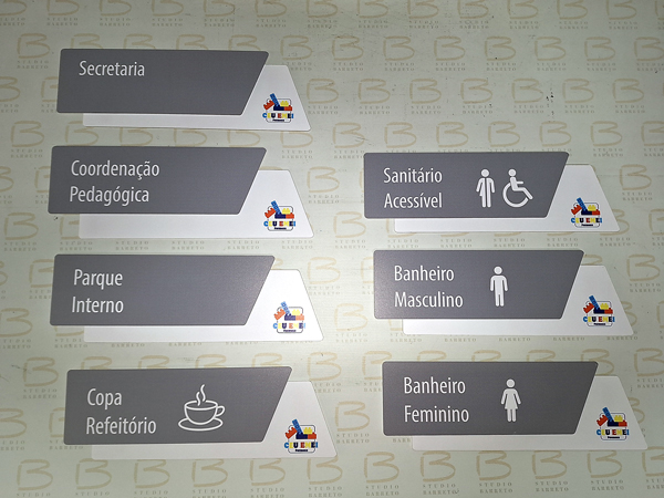 Placa PVC com letras e ilustrações em adesivo plotado |