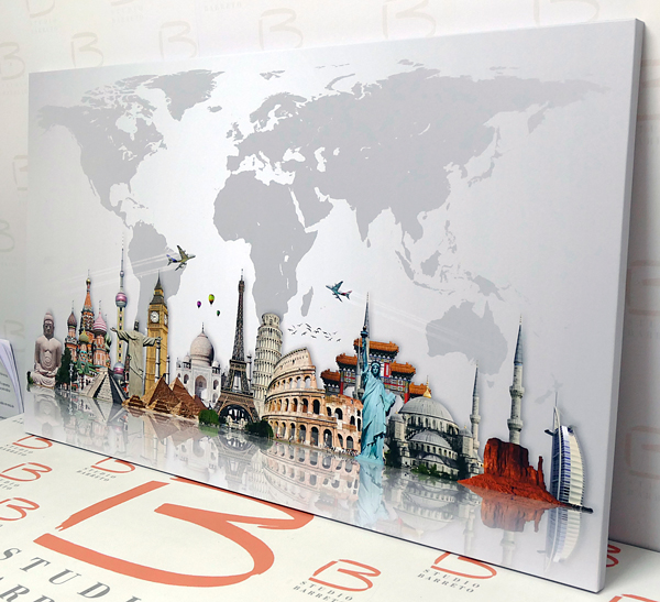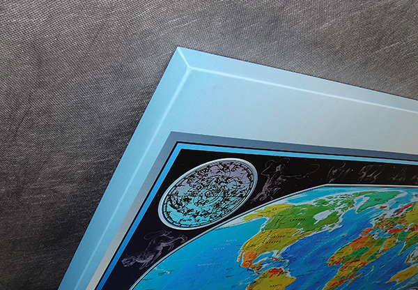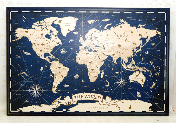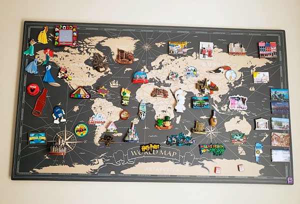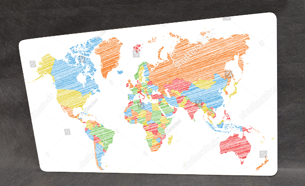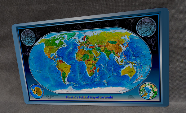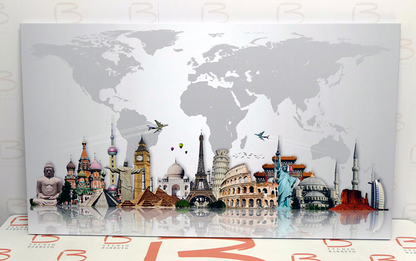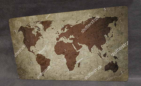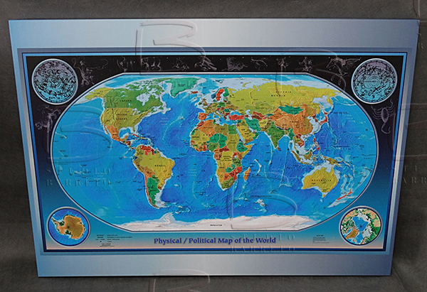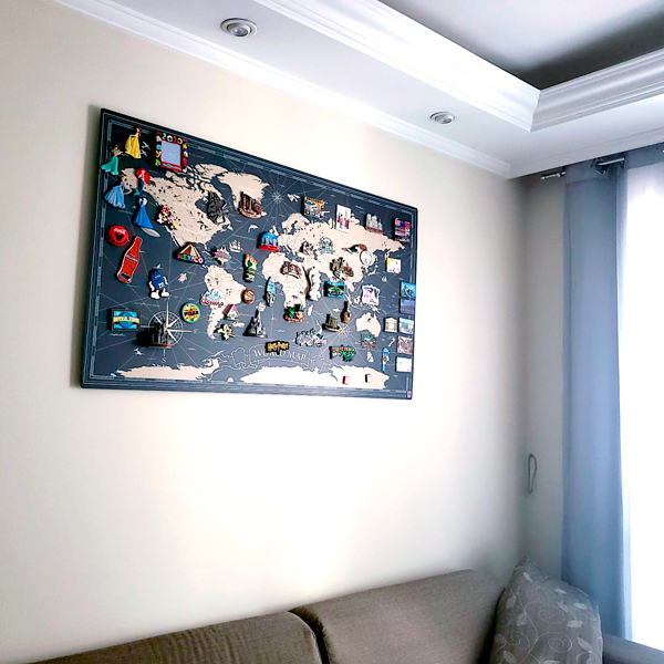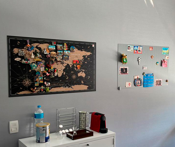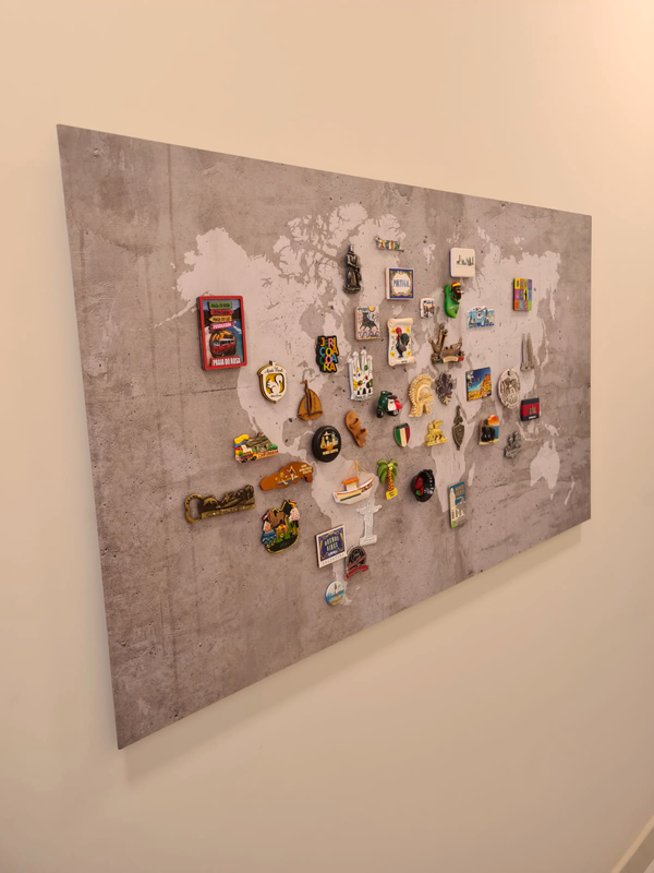 | Quadro Lousa Magnético Imitação Aço Escovado com Mapa-mundí | |