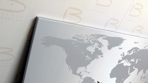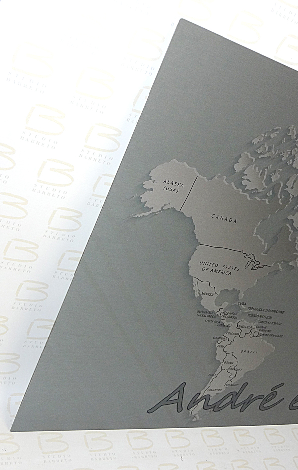| Lousa Mural para Ímãs Personalizado Imitação Aço Escovado Mapa | |