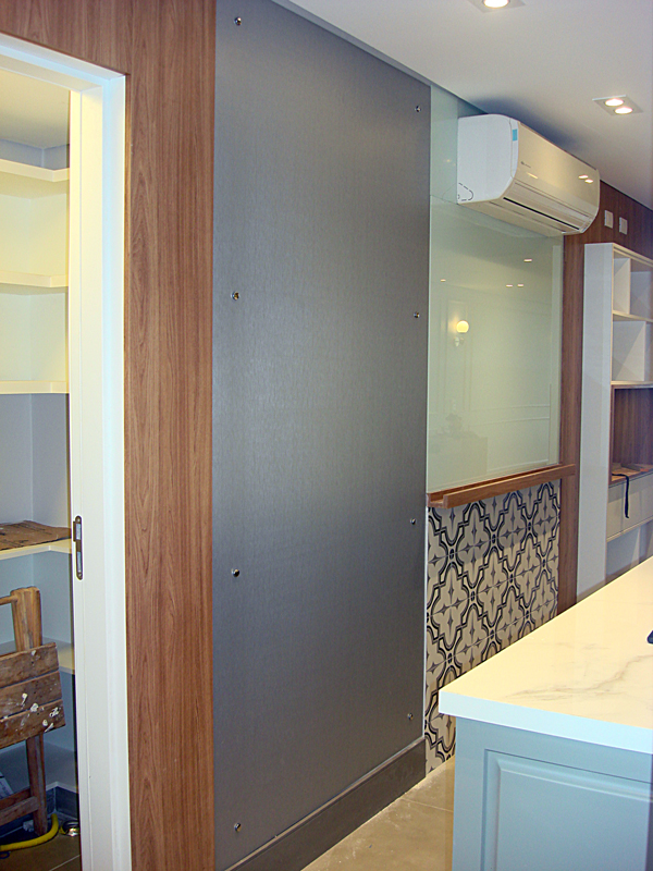 Parede Magnética Imitação Aço Escovado em Cozinha | ||